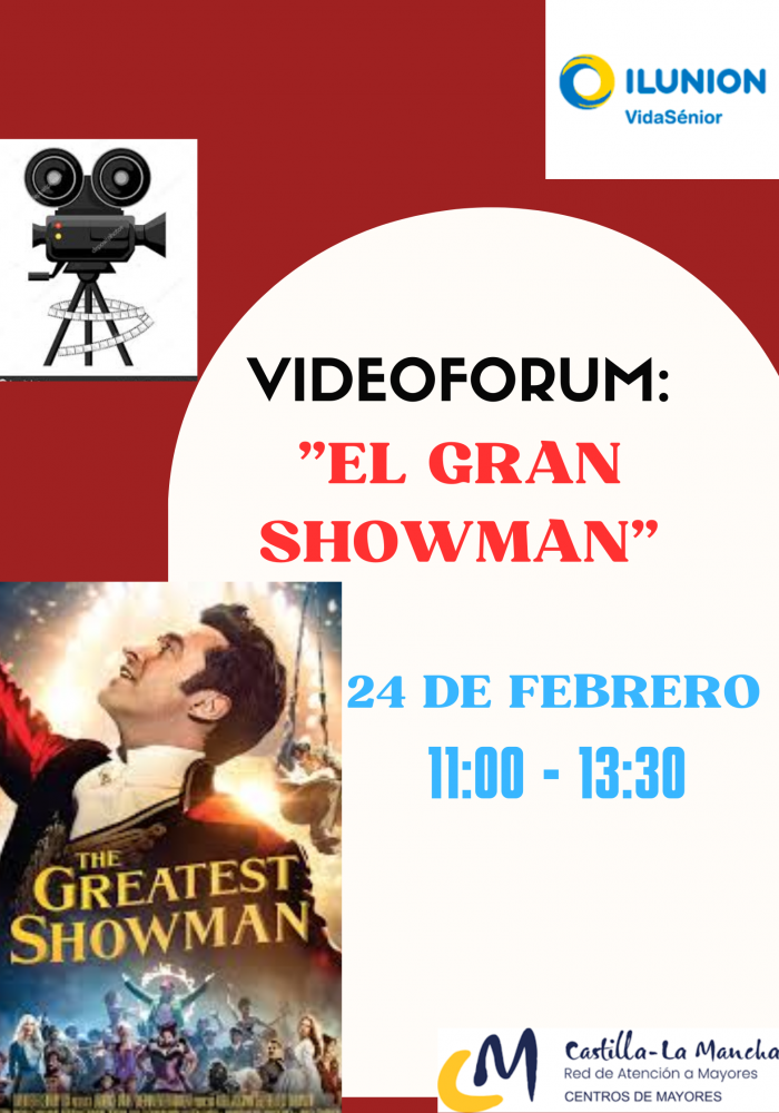 Tras "EL GRAN SHOWMAN" se realizará un videoforum con la proyección de la película "EL GRAN SHOWMAN". Esta película nos enseña la importancia de la autoaceptación, la celebración de la diversidad y el valor de perseguir los sueños con pasión, destacando que el éxito no radica en la aprobación externa, sino en ser auténtico y valorar a quienes nos rodean. La película promueve la superación de adversidades y el amor propio como base para la felicidad verdadera.