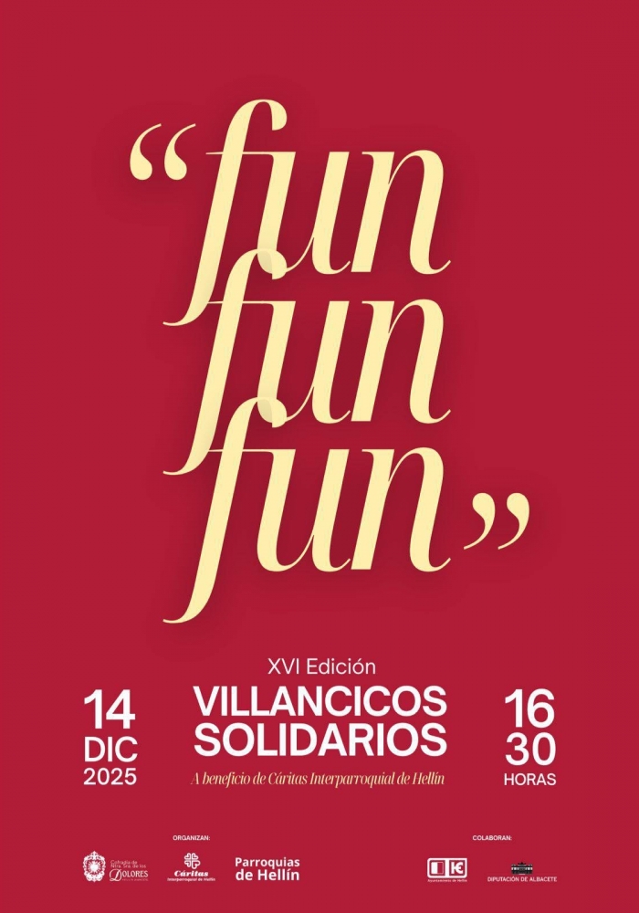Con esta finalidad os invitamos a participar en el "XVI Certamen Solidario de Villancicos Ciudad de Hellín" organizado por las Parroquias de nuestra localidad, en colaboración con la Cofradía de Nuestra Señora de los Dolores, a beneficio de Caritas Hellín. El referido Certamen se celebrará el próximo Domingo día 14 de diciembre a las 16:30 horas en la Parroquia del Corazón de Jesús y en el se pretende la participación tanto de los colegios como de los grupos y coros que así lo deseen.