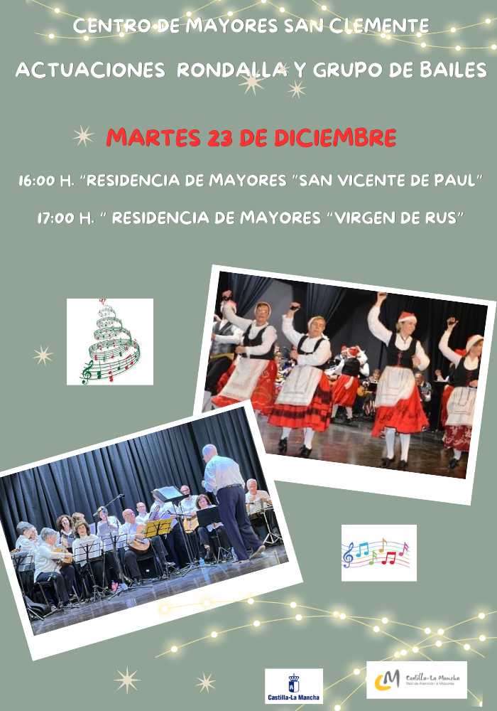 CON MOTIVO DE LA NAVIDAD LA RONDALLA DEL CENTRO Y GRUPO DE BAILES REGIONALES ACTUAN EN LAS DOS RESIDENCIAS DE MAYORES "SAN VICENTE DE PAUL" Y "VIRGEN DE RUS"