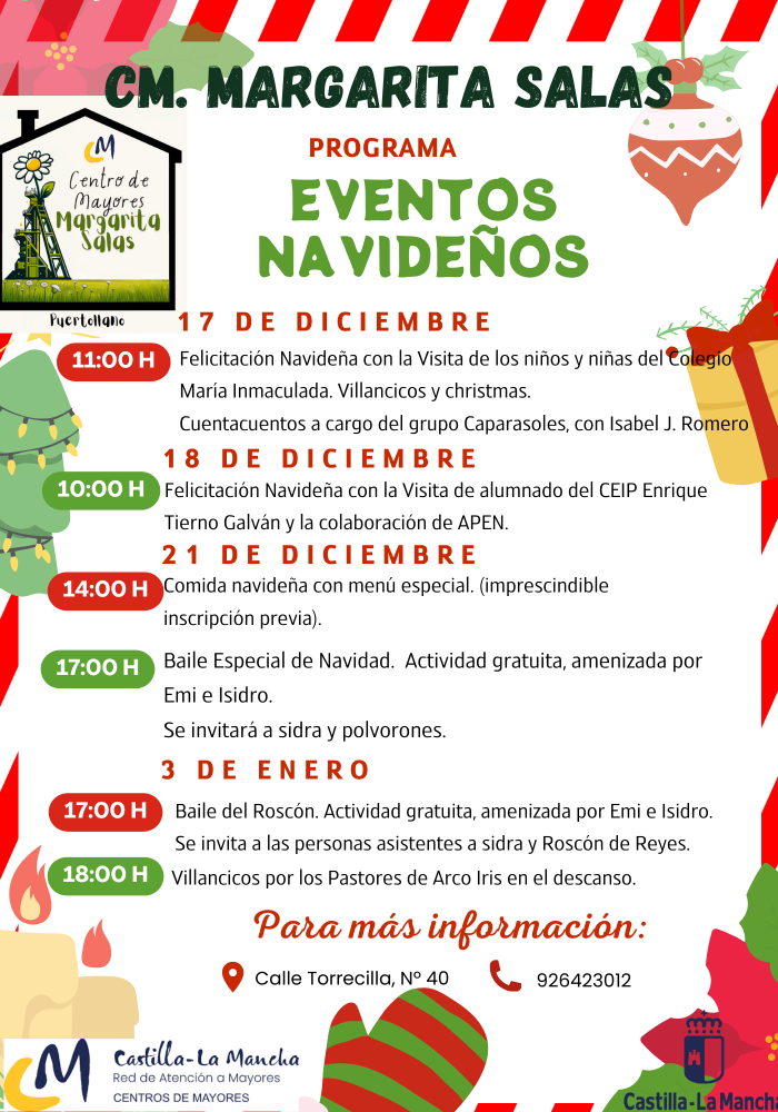 Los niños y niñas del primer ciclo de Educación primaria del Colegio María Inmaculada de Puertollano, visitan nuestro centro, nos cantan villancicos y traen christmas para las personas mayores. El grupo de Poesía "Los poetas del Caparasol" amenizan la jornada con cuentos, poesías y relatos escenificados para los niños y niñas. Nos felicitamos la Navidad mutuamente.