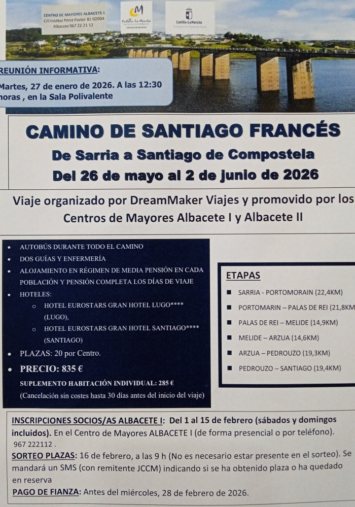 Viaje de 8 días de duración en el que se realizaran 6 etapas del camino de Santiago, acompañados en todo momento por dos guías expertos en el camino y una enfermera