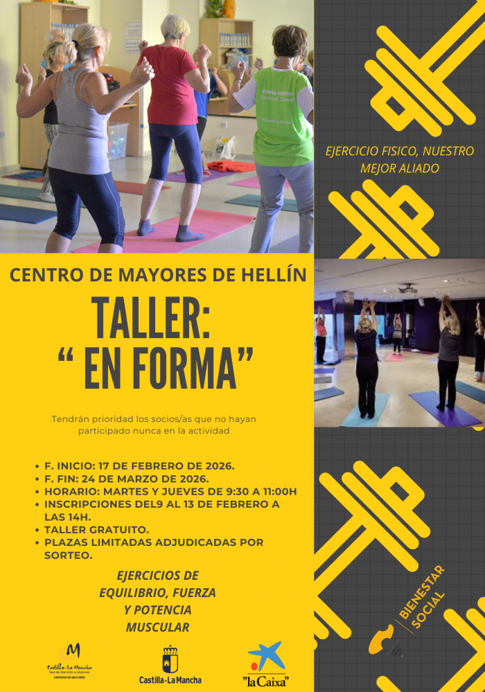 El taller "En Forma" es un taller de ejercicio físico, orientado a mejorar la condición física de las personas mayores. Se trabajan el mantenimiento y el incremento de la fuerza y la potencia muscular, el equilibrio y la coordinación para conservar una buena forma física.