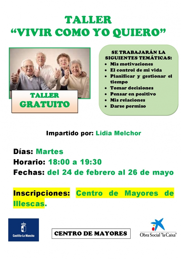 Se trabajarán las siguientes temáticas: mis motivaciones, el control de mi vida, planificar y gestionar el tiempo, tomar decisiones, pensar en positivo, mis relaciones y darse permiso.