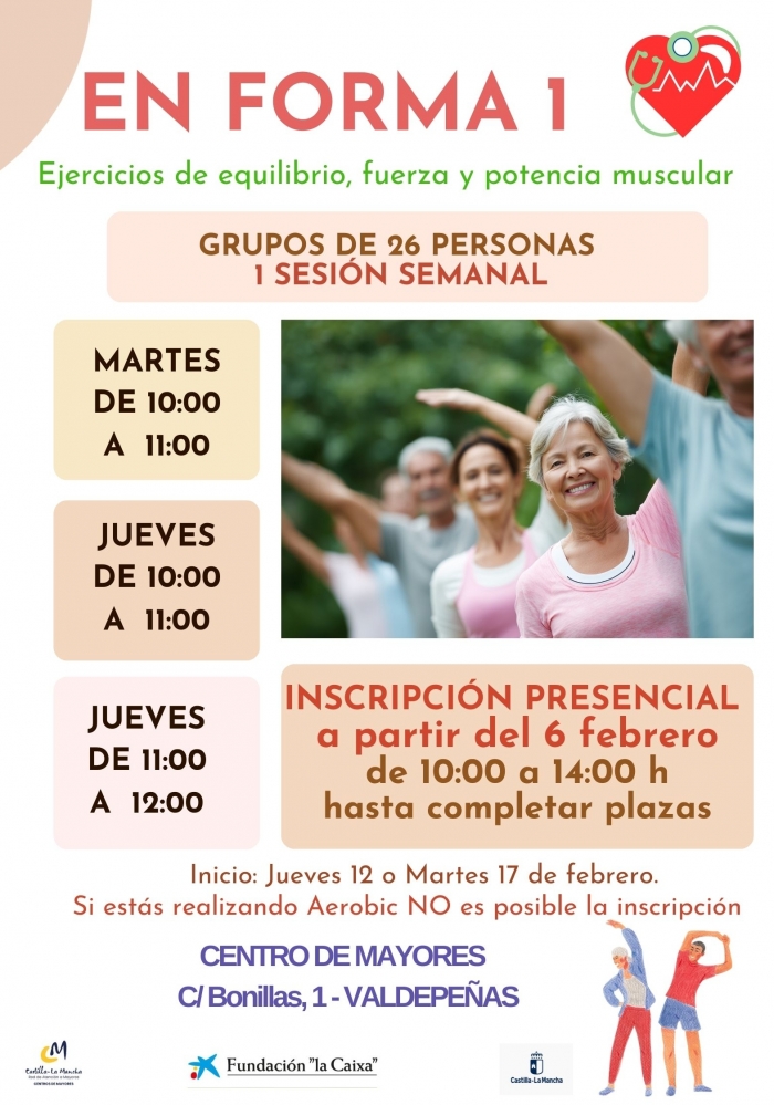 Se trabajarán el mantenimiento y el incremento de la fuerza y la potencia muscular, el equilibrio y la coordinación para conservar una buena forma física.
