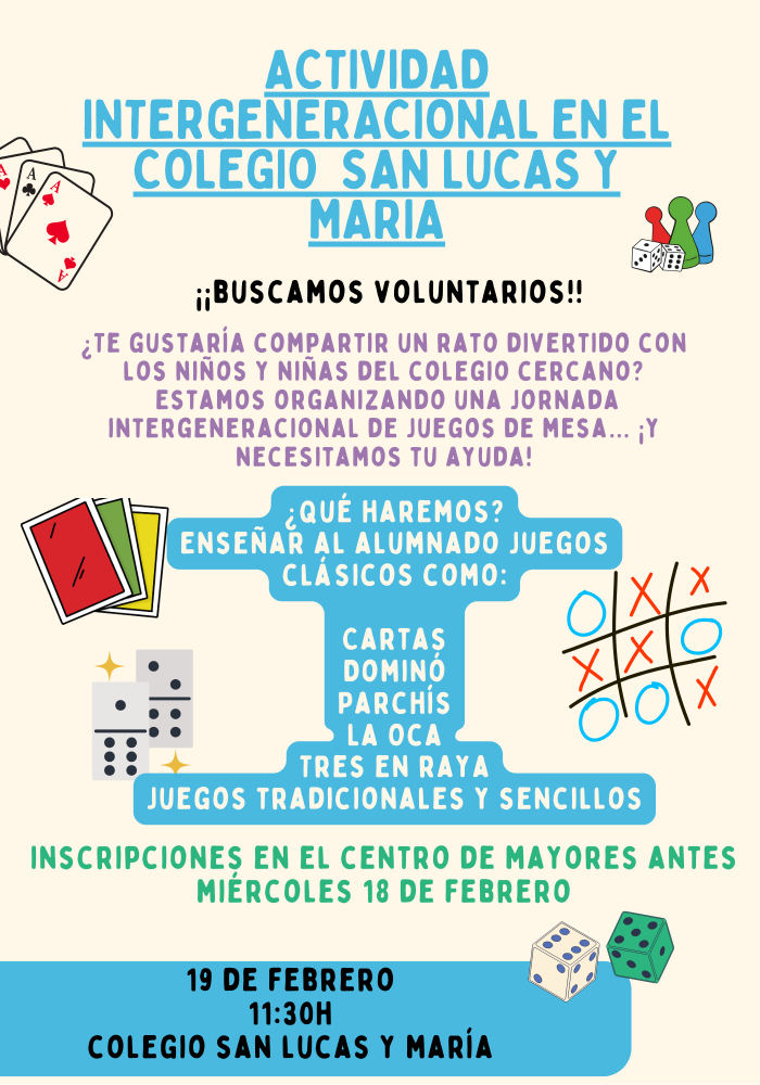 Es una actividad en la que se comparte conocimiento a través de la práctica de diferentes juegos de mesa explicado por mayores socios del centro a alumnos del colegio