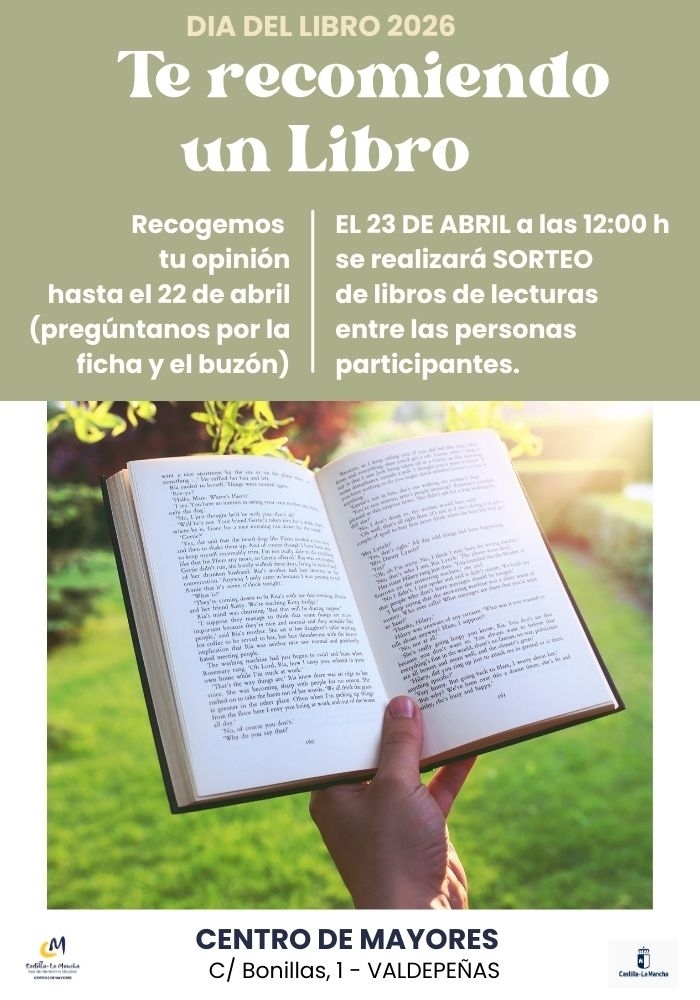 Este año la celebración del Día del Libro el 23 de abril se realizará una actividad de dinamización y animación a la LECTURA tras recoger las recomendaciones de lecturas de socios y socias con anterioridad. El 23 de abril se harán públicas el listado de libros y autores recomendados y se sortearán libros de lecturas entre las personas participantes.