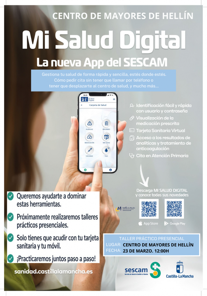 Mi Salud Digital es la plataforma oficial del Servicio de Salud de Castilla-La Mancha (SESCAM) diseñada para que tú, como paciente, puedas gestionar tu información médica de forma online sin tener que desplazarte al centro de salud.