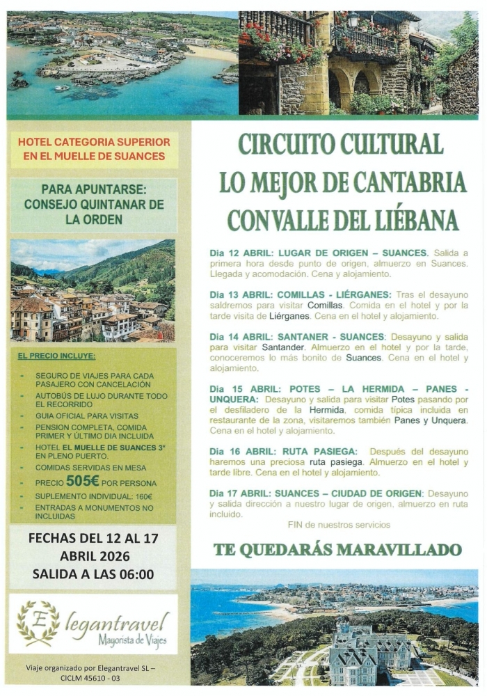 Viaje por Cantabria y el valle del Liébana del 12 al 17 de abril. Se recorrerán lugares de enorme interés tanto cultural como paisajístico destacando Suances, Comillas, Lierganes, Santander, Potes, La Hermida, Panes, Unquera y la ruta pasiega.