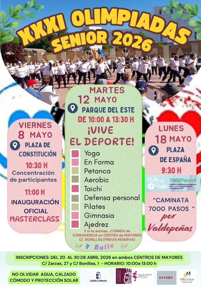 - 8 de mayo - Inauguración de las 31ª Olimpiadas Senior de Valdepeñas: Masterclass y Coreografías- Plaza de España
