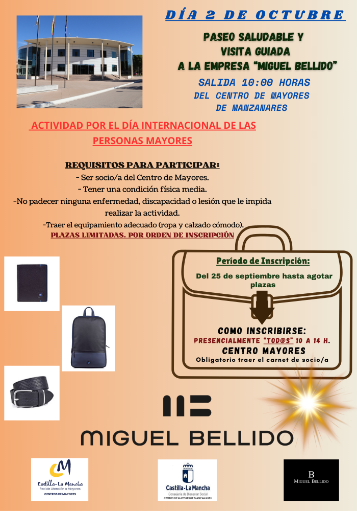 Se trata de realizar un paseo saludable desde el Centro de Mayores hasta la empresa "Miguel Bellido" donde se realizará una visita guiada a sus instalaciones.