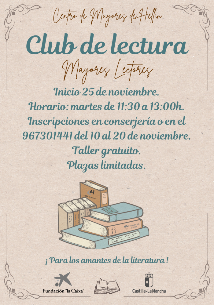 Este club de lectura es una actividad diseñada especialmente para los usuarios del Centro de Mayores de Hellín que creen en el poder de los libros para mantener la mente activa y el espíritu conectado.