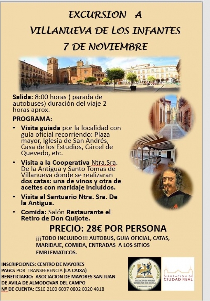 VIAJE CULTURAL A VILLANUEVA DE LOS INFANTES EL 7 DE NOVIEMBRE.