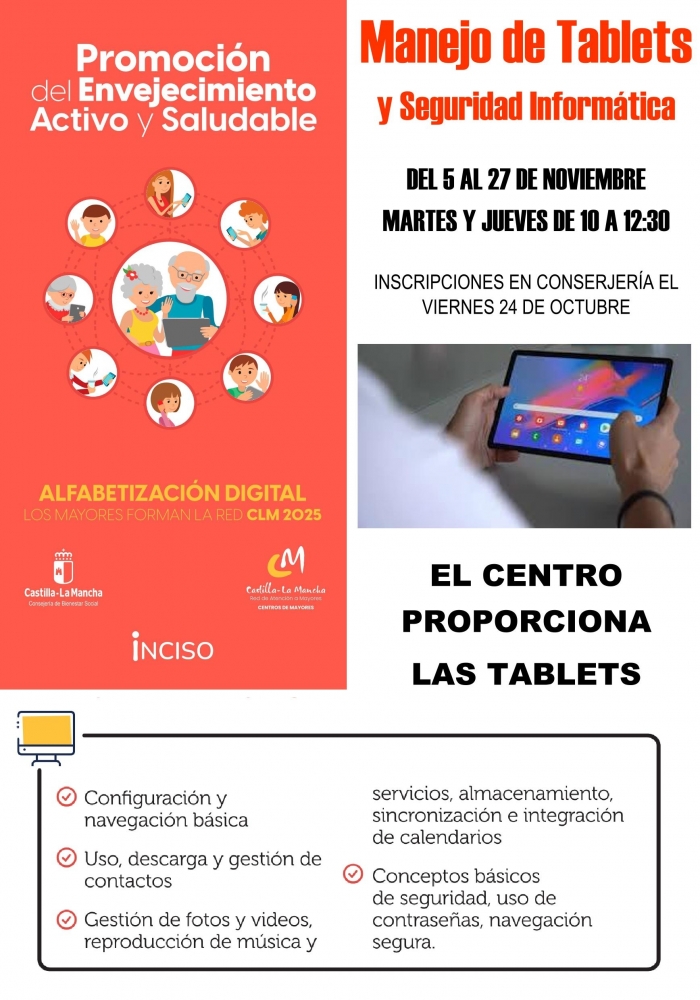 ALFABETIZACION DIGITAL. LOS MAYORES FORMAN LA RED 2025. TALLER PARA EL MANEJO DE TABLETS Y SEGURIDAD INFORMÁTICA.