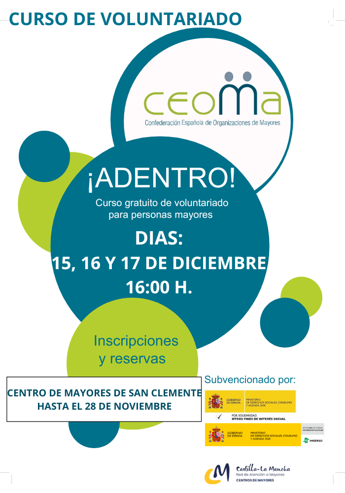 CURSO ORGANIZADO POR CEOMA Y EL PROYECTO "ADENTRO" PARA LA FORMACIÓN DE VOLUNTARIADO DE PERSONAS MAYORES PARA LA ANIMACIÓN SOCIOCULTURAL.