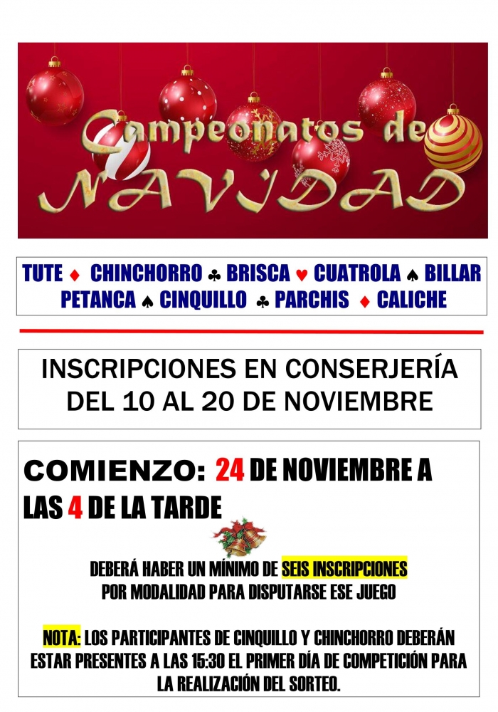 CAMPEONATOS DE JUGOS DE MESA, CALICHE Y PETANCA