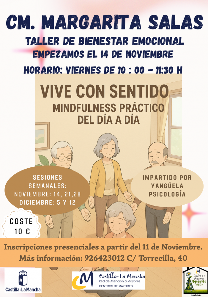 Se va a impartir en el Centro un Taller sobre bienestar emocional: "Vive con sentido". Mindfulness práctico del día a día.