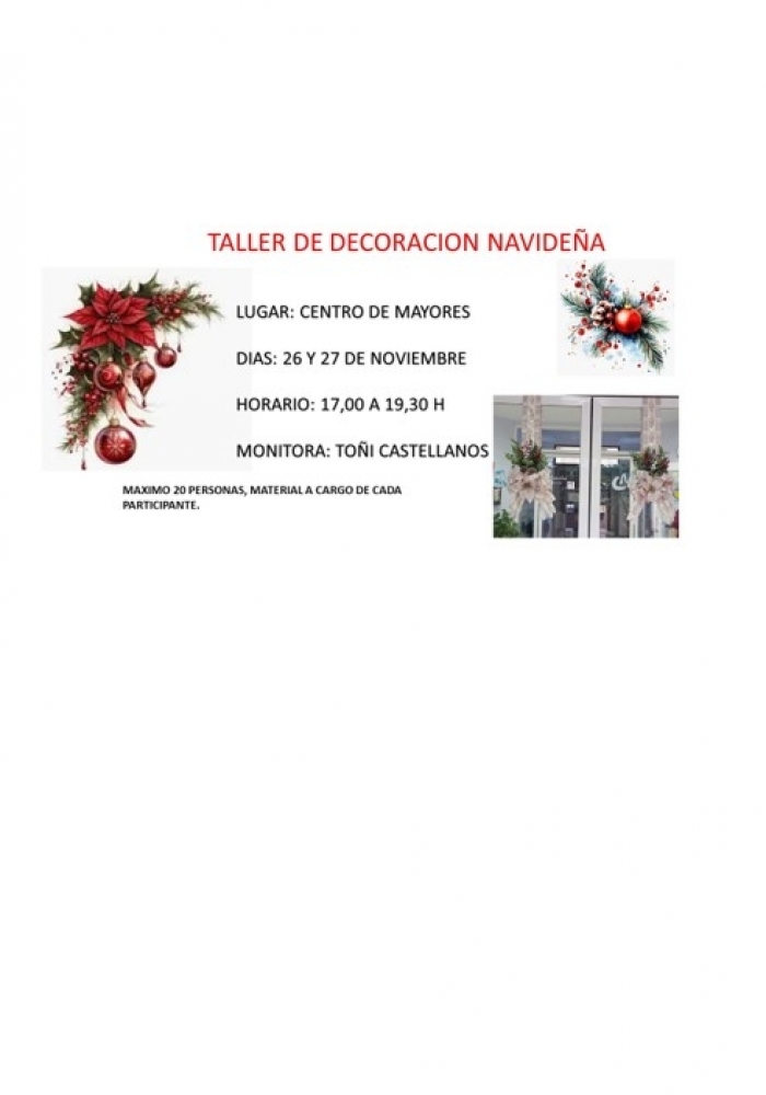 TALLER DE DECORACIÓN NAVIDEÑA.