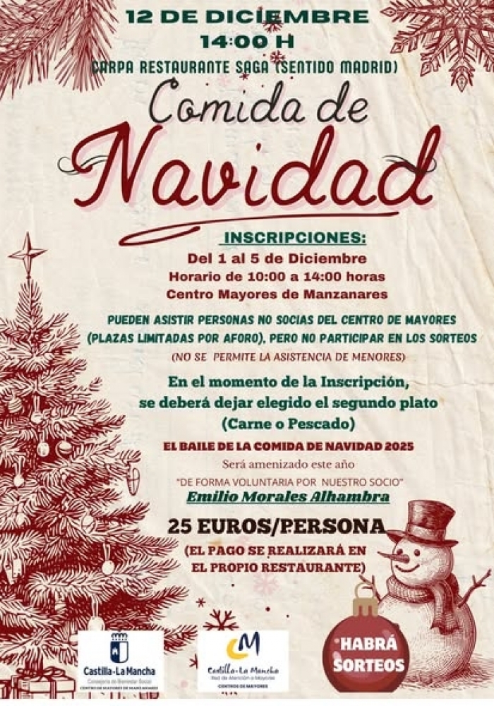Se trata de una Comida de Convivencia para socios y acompañantes con motivo de la celebración de las Fiestas Navideñas