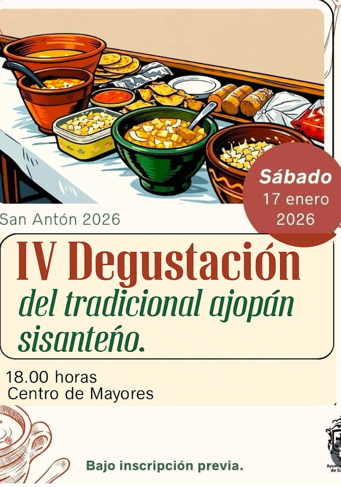 A través de la Concejalía de Cultura y tradiciones del Ayuntamiento de la localidad, se organiza la cuarta degustación de ajopan, con motivo de las fiestas de San Antón.