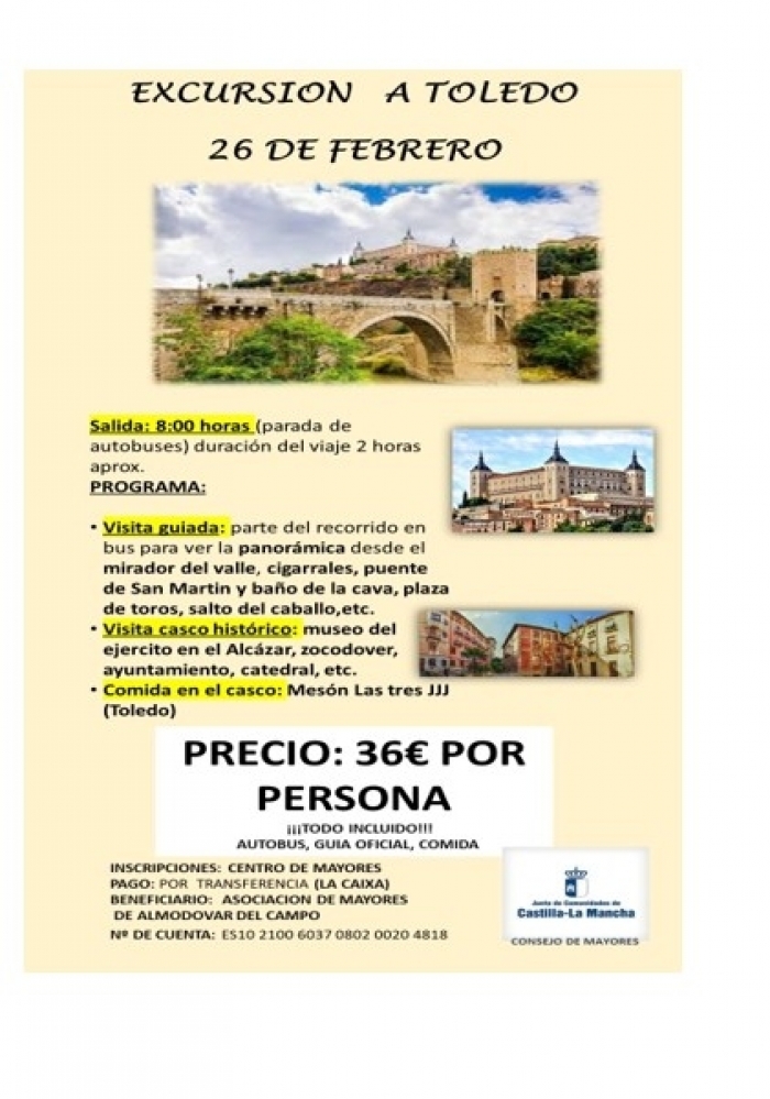 EXCURSIÓN A TOLEDO EL 26 DE FEBRERO DE 2026, A CARGO DEL CONSEJO DE MAYORES.