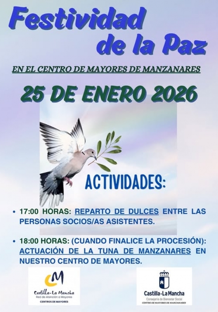 Con motivo de la Festividad de "La Paz" de gran arraigo en la localidad, se realizarán actividades en el Centro.