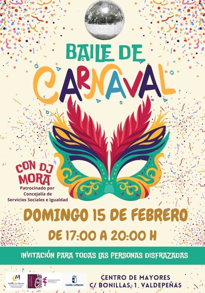 dOMINGO 15 de febrero: Tarde de Carnaval, con la colaboración del Ayuntamiento de Valdepeñas. por la actuación de DJ MORA