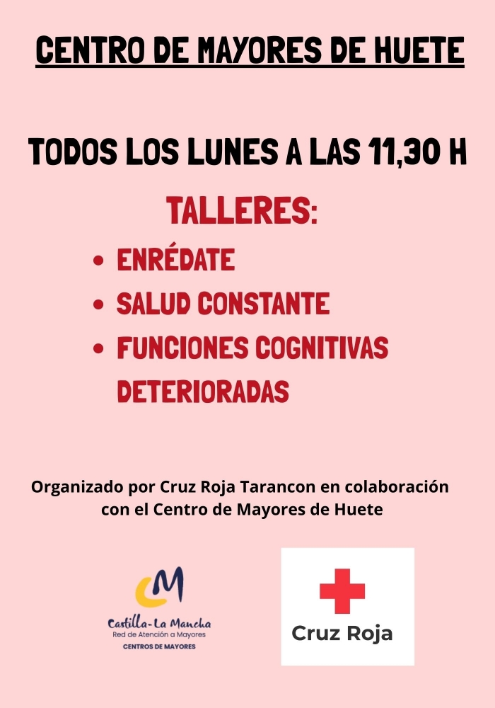 Se realiza un taller semanal impartido por voluntarios y profesionales de Cruz Roja Tarancon con contenido diverso: talleres de memoria, gimnasia, desayunos saludables, manualidades, charlas, excursiones...