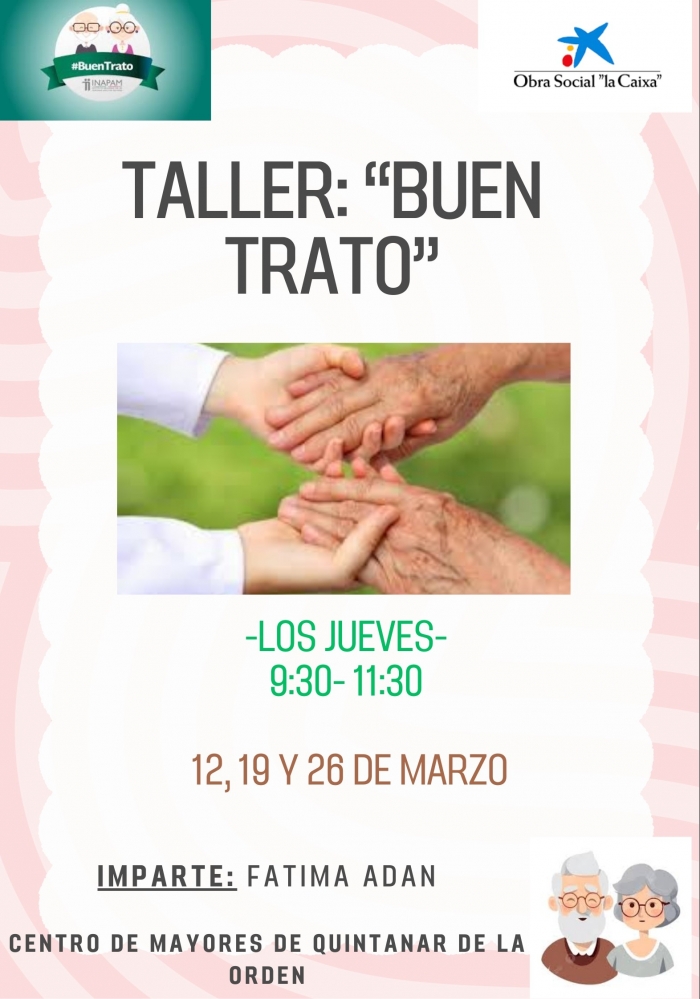El Taller que se enmarca dentro del Programa de Personas Mayores de La Obra Social "La Caixa", pretende contribuir al favorecimiento del buen trato de las personas mayores a través de dos perspectivas, la ética, para ayudar a identificarse como una persona valiosa y desarrollar su autoestima, y la jurídica, para que los asistentes aprendan sus derechos, la calidad de la atención recibida, el maltrato hacia la persona mayor etc. Se realizará mediante una metodología participativa y flexible a través de dinámicas que faciliten el intercambio de experiencias y la comunicación entre los asistentes. Durará 6 horas distribuidas en sesiones de 2 horas.
