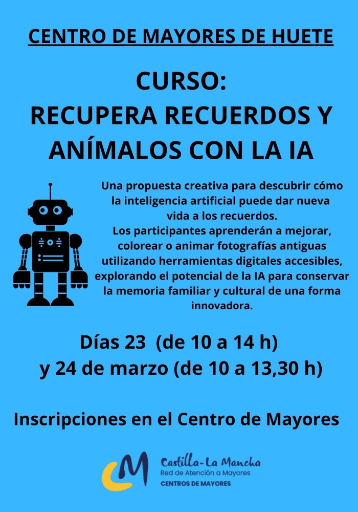 Los participantes aprenderán a mejorar, colorear o animar fotografías antiguas utilizando herramientas digitales accesibles, explorando el potencial de la IA para conservar la memoria familiar y cultural de una forma innovadora.